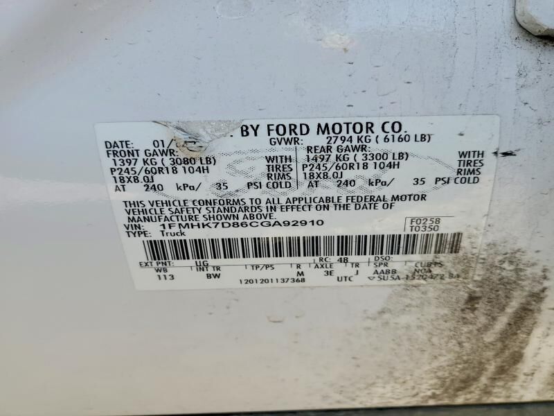VIN 1FMHK7D86CGA92910 may have been