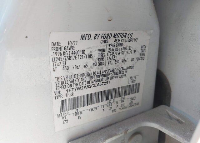 VIN 1FT7W2A62CEA67251 may have been