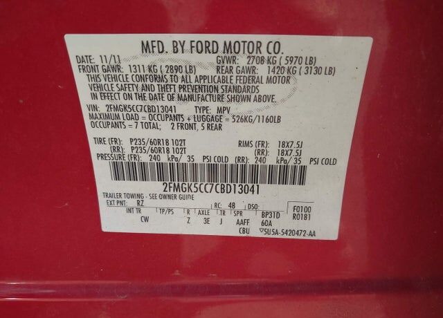 VIN 2FMGK5CC7CBD13041 may have been