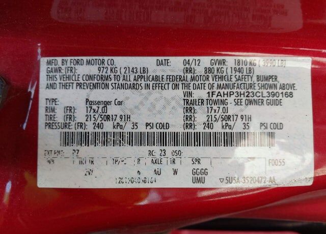 VIN 1FAHP3H23CL390168 may have been