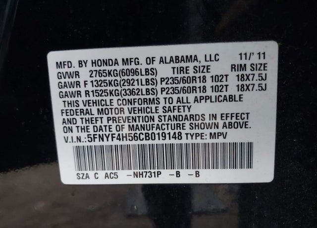 VIN 5FNYF4H56CB019148 may have been