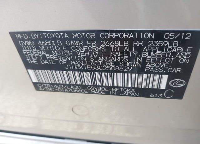 I'm interested in: 2012 LEXUS ES