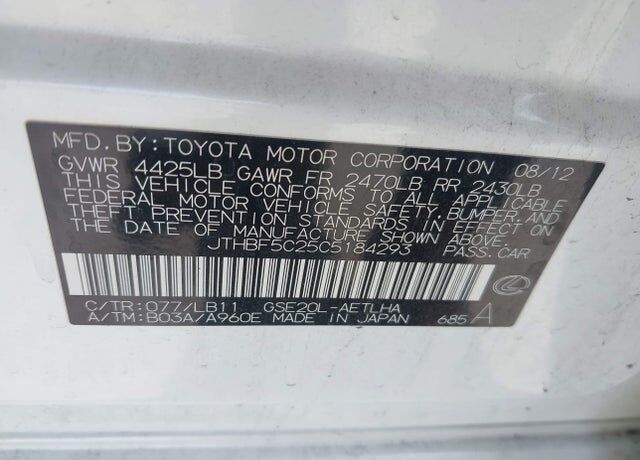 I'm interested in: 2012 LEXUS IS