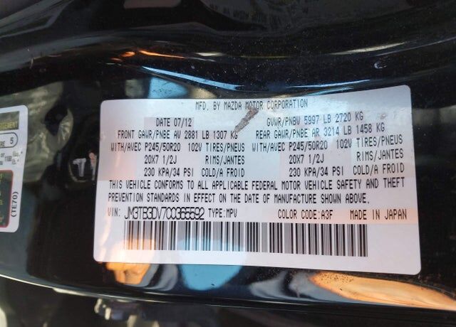 VIN JM3TB3DV7C0365592 may have been