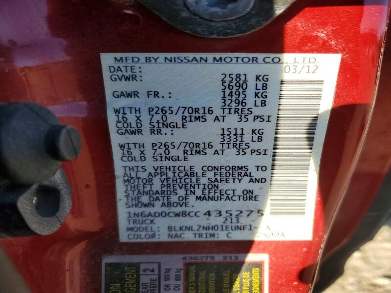 VIN 1N6AD0CW8CC435275 may have been