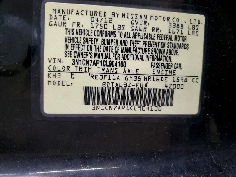 VIN 3N1CN7AP1CL904100 may have been