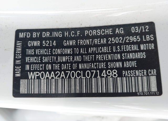 VIN WP0AA2A70CL071498 may have been