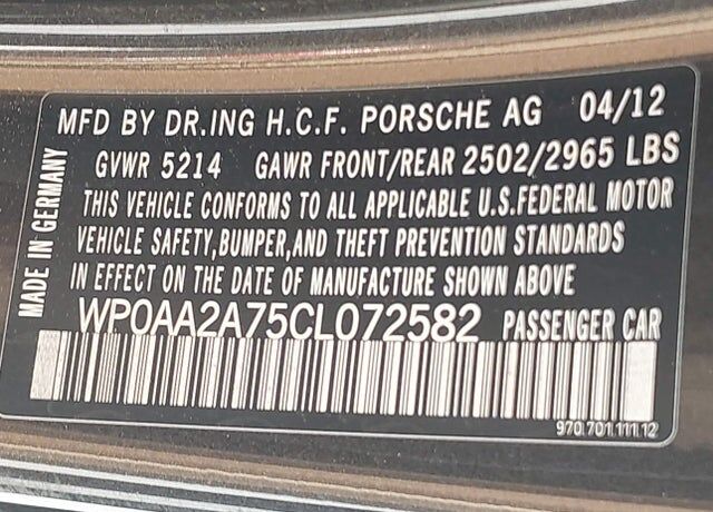 VIN WP0AA2A75CL072582 may have been