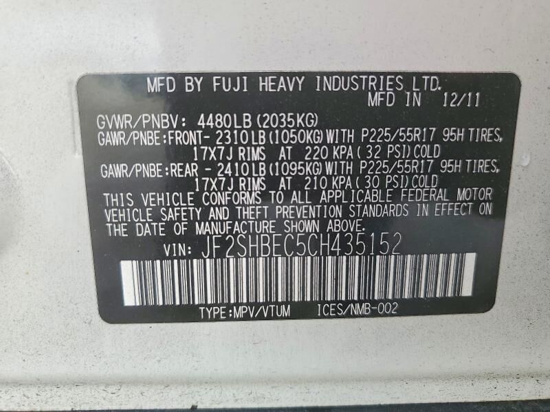 VIN JF2SHBEC5CH435152 may have been