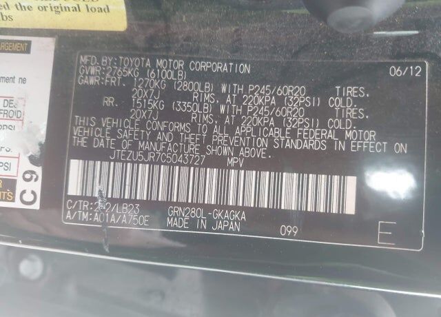 I'm interested in: 2012 TOYOTA 4-Runner