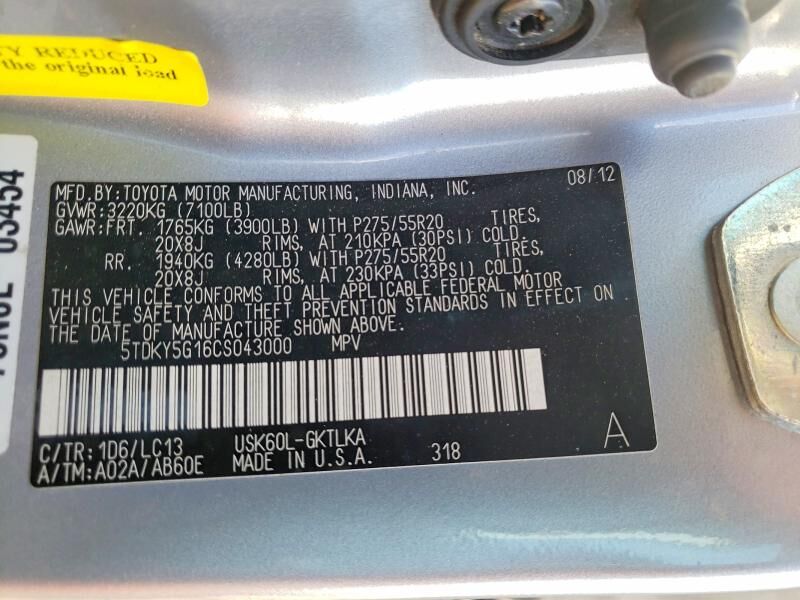 VIN 5TDKY5G16CS043000 may have been
