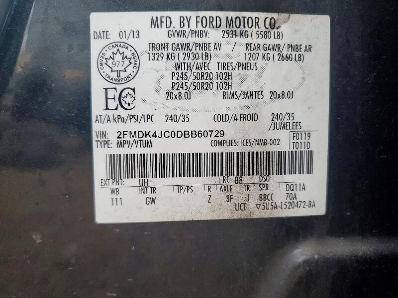 VIN 2FMDK4JC0DBB60729 may have been