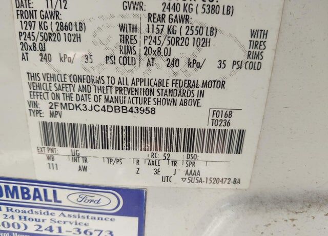 VIN 2FMDK3JC4DBB43958 may have been