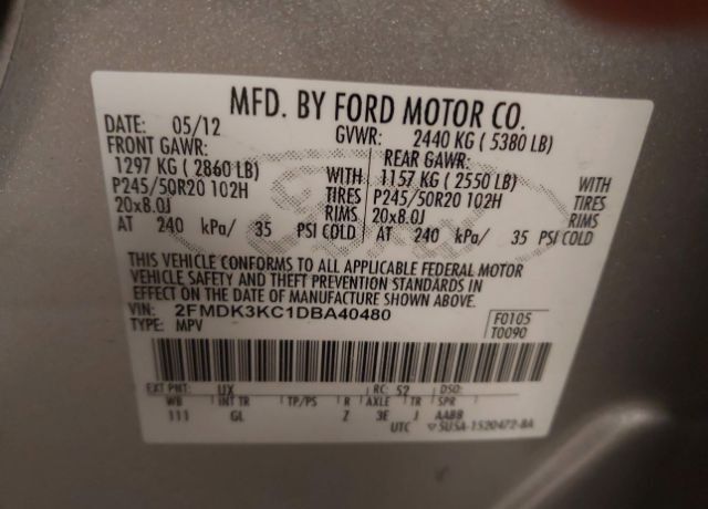 VIN 2FMDK3KC1DBA40480 may have been