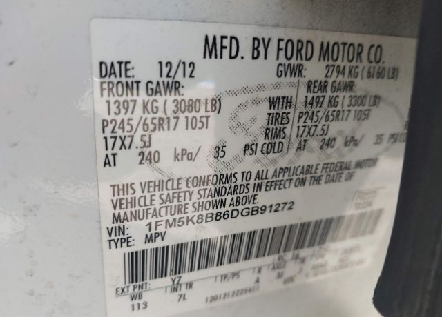 VIN 1FM5K8B86DGB91272 may have been