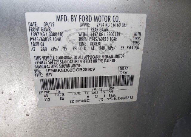 VIN 1FM5K8D82DGB28909 may have been