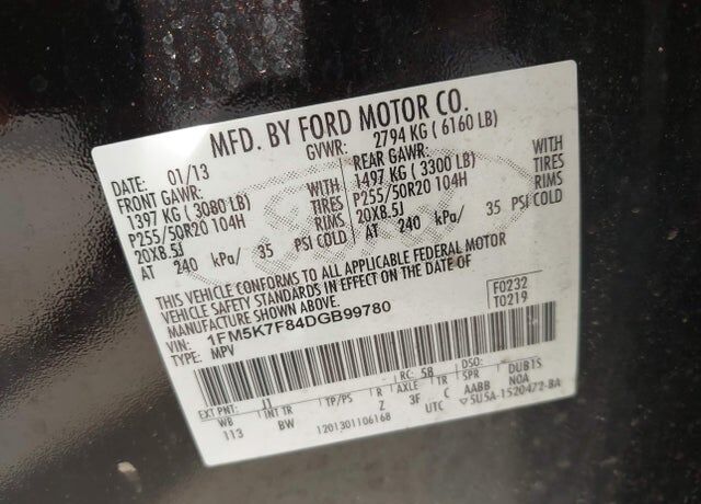 VIN 1FM5K7F84DGB99780 may have been
