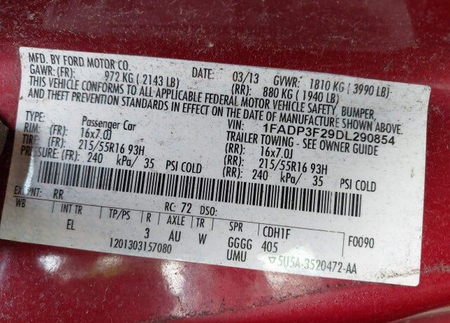 VIN 1FADP3F29DL290854 may have been