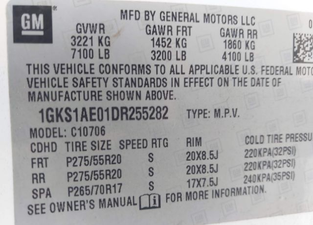 VIN 1GKS1AE01DR255282 may have been