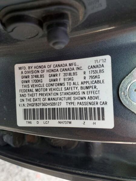 Vehicle Records & Info. Your report VIN 2HGFB2F56DH509127 includes: