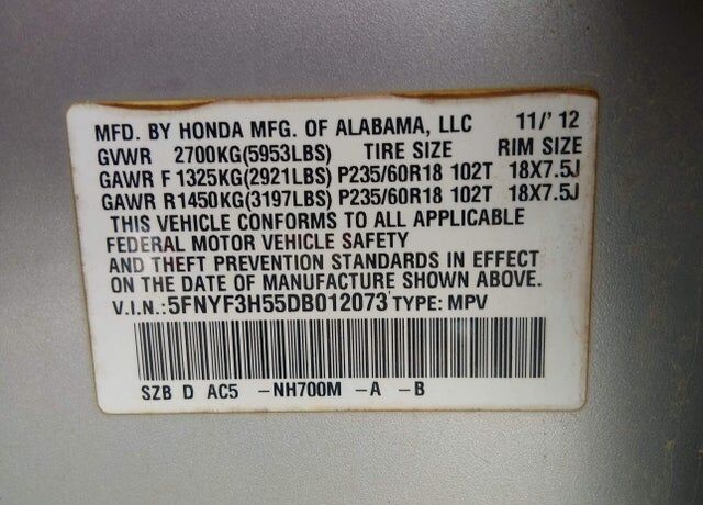 VIN 5FNYF3H55DB012073 may have been