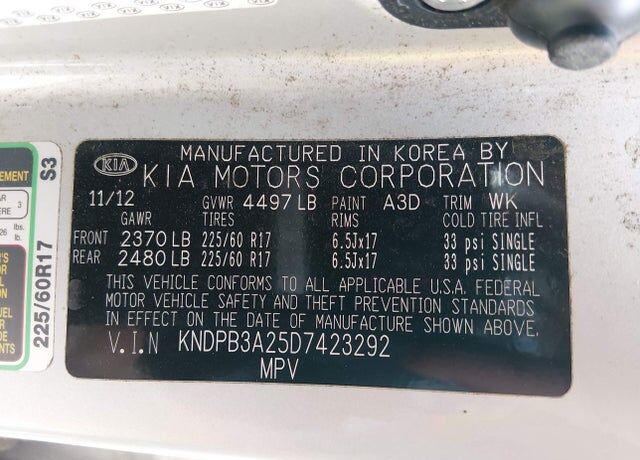 VIN KNDPB3A25D7423292 may have been