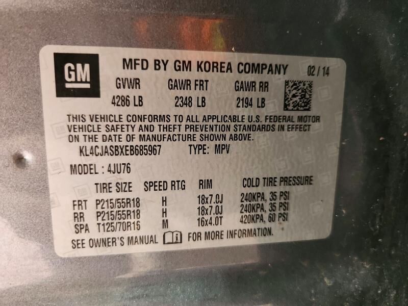 VIN KL4CJASBXEB685967 may have been