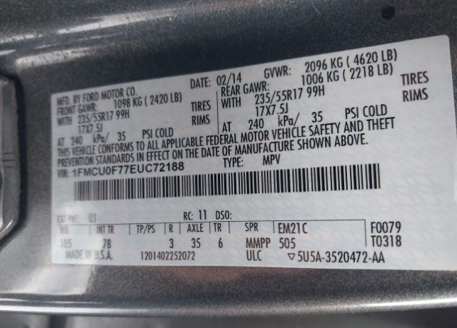 VIN 1FMCU0F77EUC72188 may have been