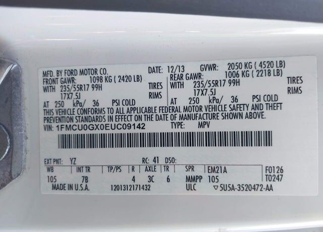 VIN 1FMCU0GX0EUC09142 may have been
