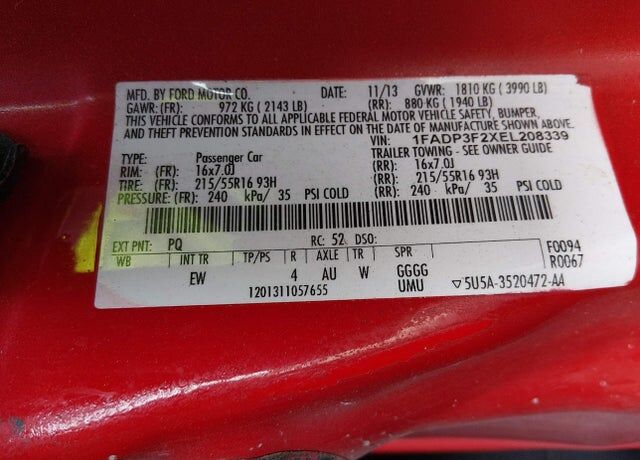 VIN 1FADP3F2XEL208339 may have been