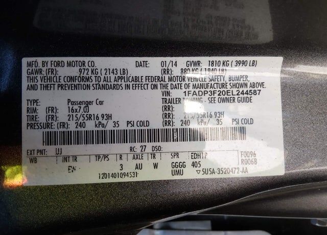 VIN 1FADP3F20EL244587 may have been