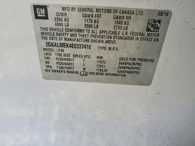 Vehicle Records & Info. Your report VIN 2GKALMEK4E6337416 includes: