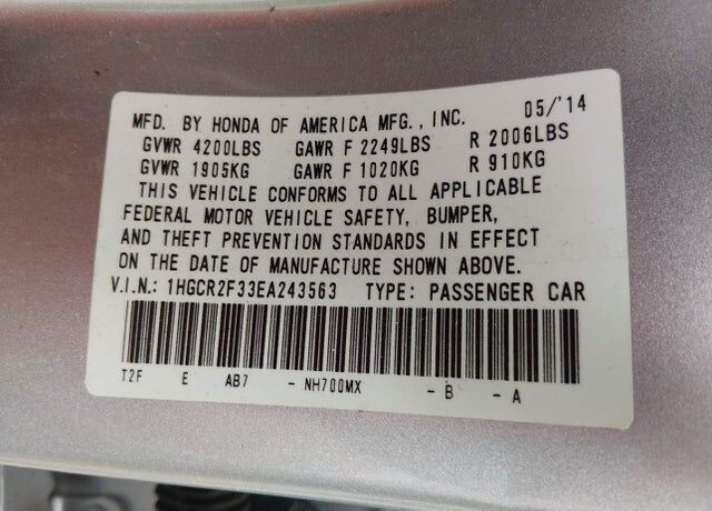 VIN 1HGCR2F33EA243563 may have been