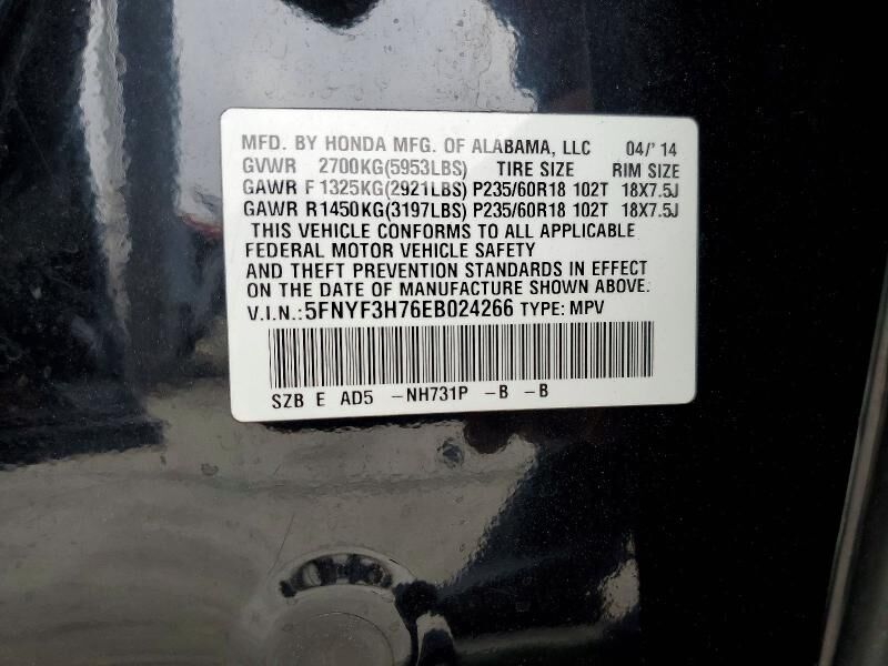 VIN 5FNYF3H76EB024266 may have been