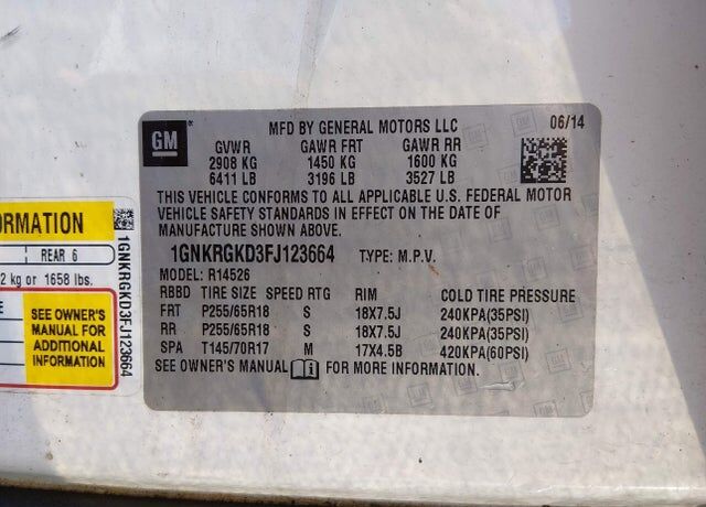 VIN 1GNKRGKD3FJ123664 may have been