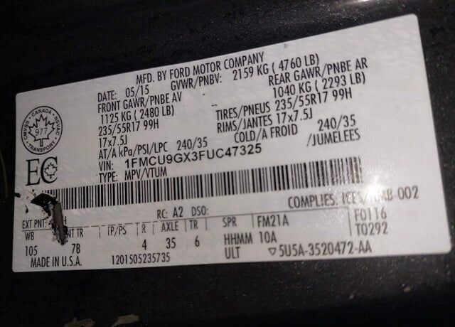 VIN 1FMCU9GX3FUC47325 may have been