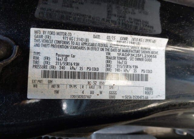 VIN 1FADP3K25FL230658 may have been