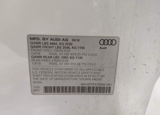 VIN WA1EFCFS7GR021961 may have been