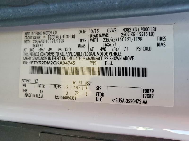 VIN 1FTYR2DM2GKA04745 may have been