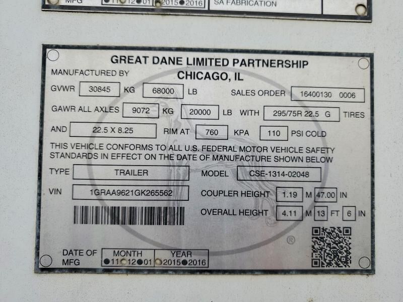 I'm interested in: 2016 GREAT DANE TRAILERS Great Dane Trailers