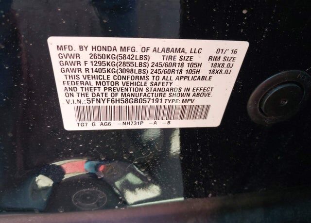 VIN 5FNYF6H58GB057191 may have been