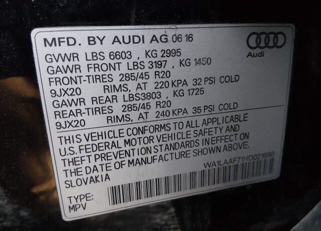 VIN WA1LAAF71HD021698 may have been