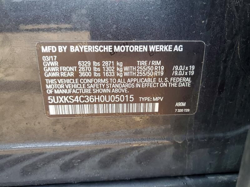VIN 5UXKS4C36H0U05015 may have been