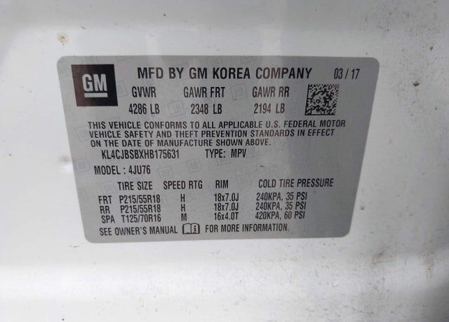 VIN KL4CJBSBXHB175631 may have been