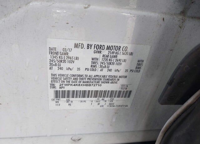 VIN 2FMPK4K8XHBB72710 may have been