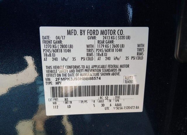 VIN 2FMPK3J93HBB88574 may have been