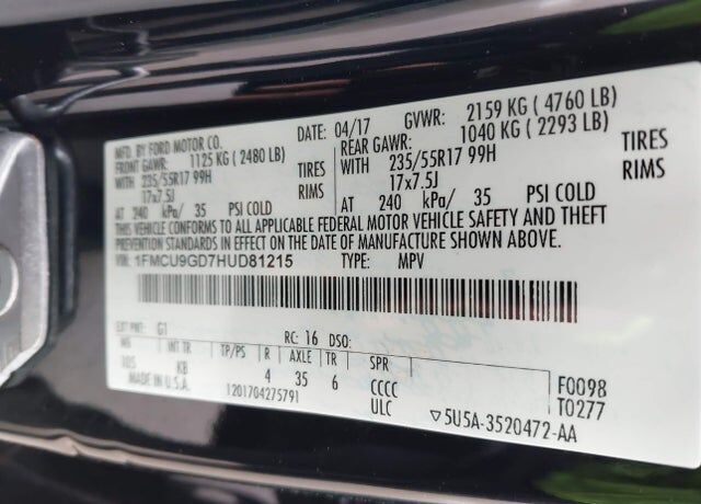 VIN 1FMCU9GD7HUD81215 may have been