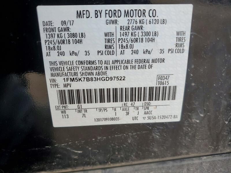 VIN 1FM5K7B83HGD97522 may have been