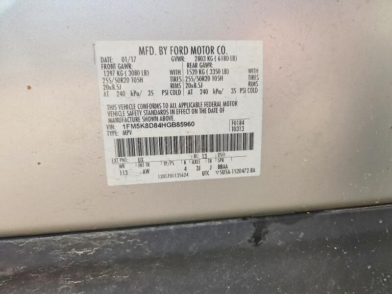 VIN 1FM5K8D84HGB85960 may have been