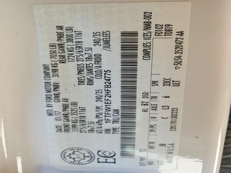 VIN 1FTFW1EF2HFB24775 may have been